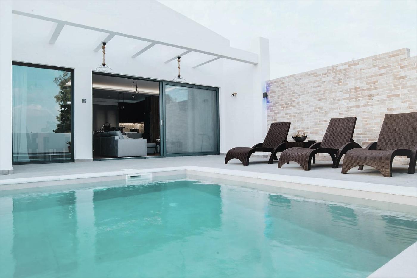Three-Bedroom Villa. The pool with a view is a top feature of this villa. Boasting a private entrance, this air-conditioned villa includes 1 living room, 3 separate bedrooms and 2 bathrooms with a walk-in shower. Guests will find a stovetop, a refrigerator, a dishwasher and kitchenware in the well-equipped kitchen. The villa also features a barbecue. Featuring a terrace with garden views, this villa also offers a washing machine and a flat-screen TV with streaming services. The unit has 7 beds.