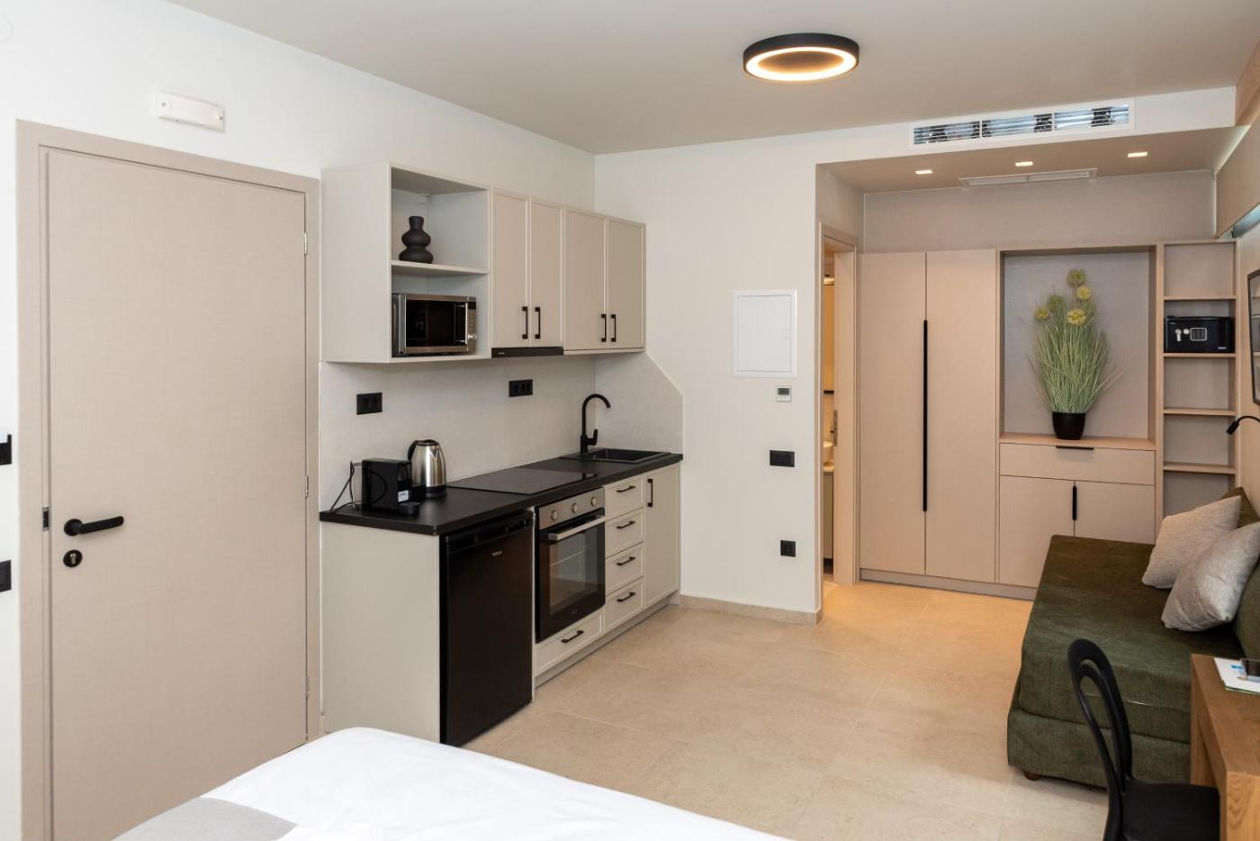 Studio with Sea View. The studios kitchen, which has a microwave and a tea and coffee maker, is available for cooking and storing food. This air-conditioned studio is comprised of a flat-screen TV with cable channels, a private bathroom as well as a balcony with sea views. The unit has 2 beds. ;