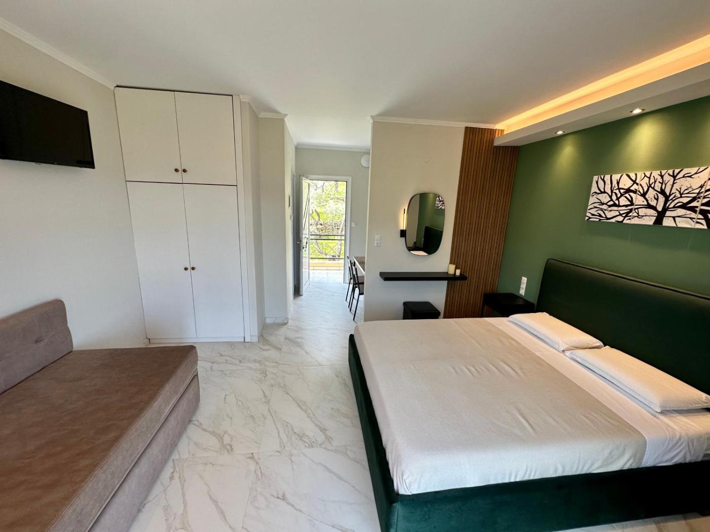 Family Studio. In the fully equipped kitchenette, guests will find a stovetop, a refrigerator, kitchenware and an oven. The studio provides air conditioning, a private entrance, a balcony with sea views as well as a private bathroom featuring a shower. The unit offers 2 beds.