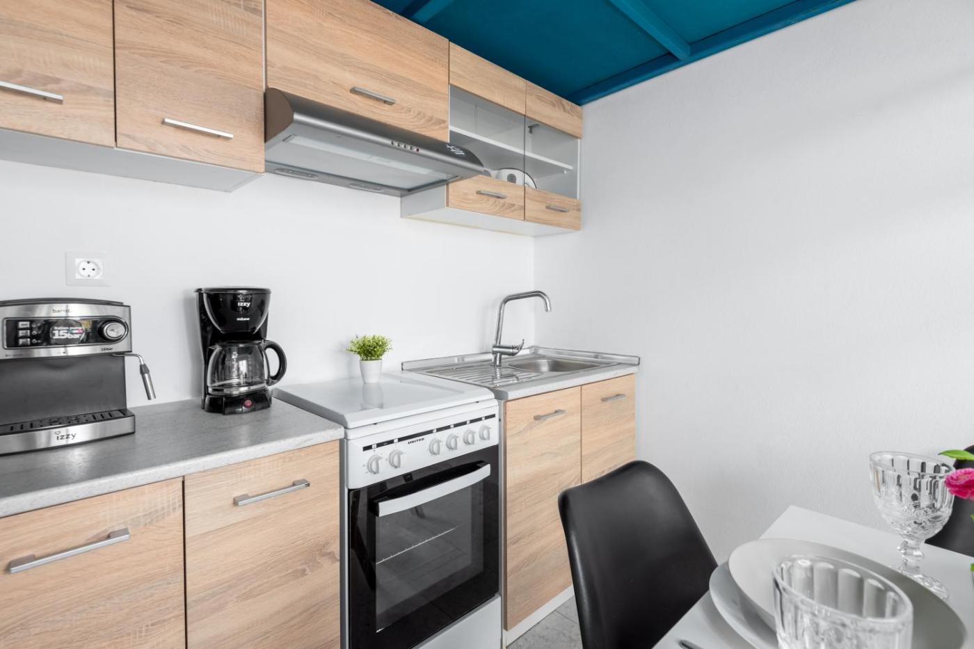 Studio with Sofa Bed. The studio provides air conditioning, a washing machine, as well as a private bathroom featuring a bath and a hairdryer. In the well-equipped kitchen, guests will find a refrigerator, kitchenware, an oven and a microwave. This studio features a coffee machine, a high chair for children, a TV and a balcony. The unit offers 2 beds.